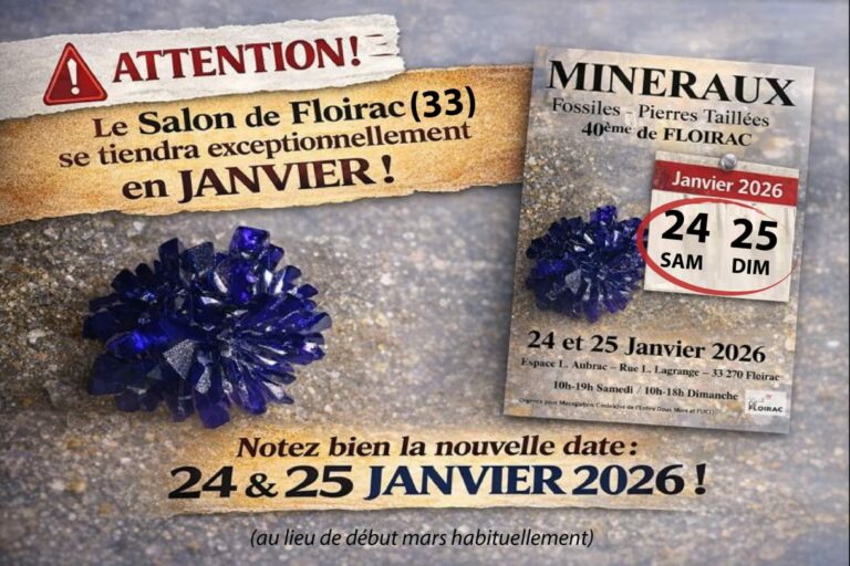 A vos agendas Expo Minéraux Floirac 24-25 janvier Conférence de printemps de l'ABC : à venir ! Les Journées de l'ABC : à venir ! Invités : Autres évenements AFC 2026 LILLE EHPRG 2026 IUCr 2026